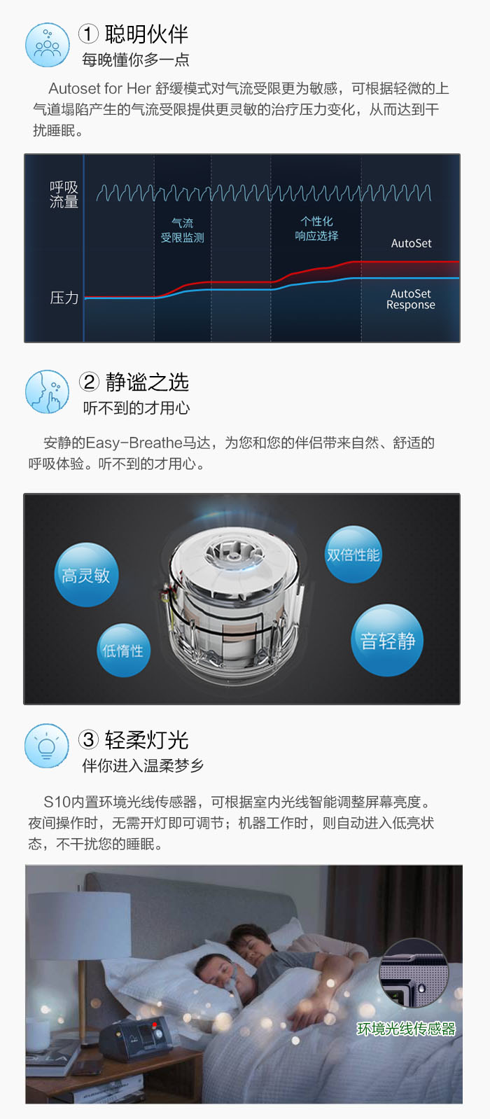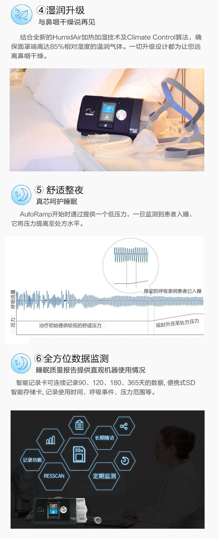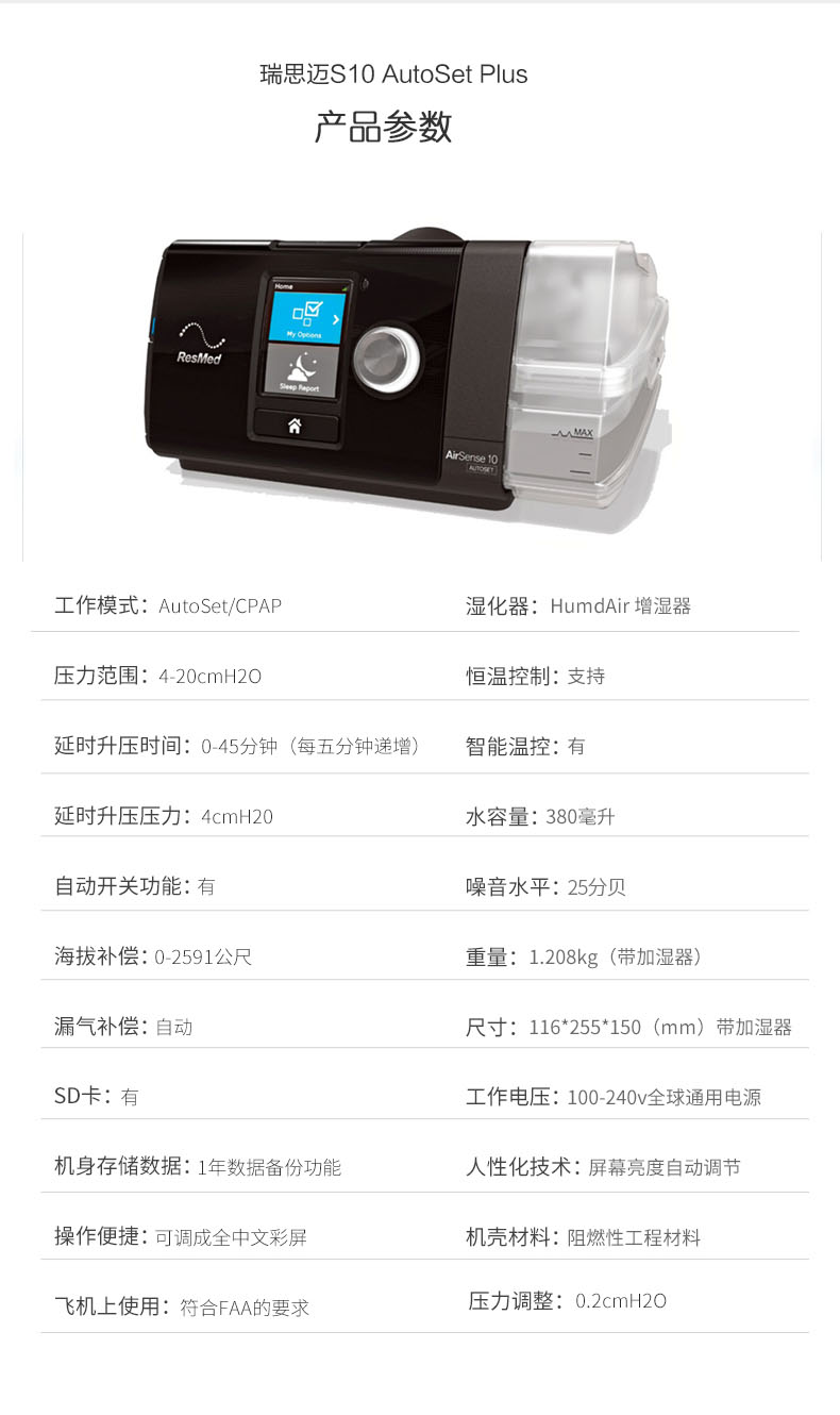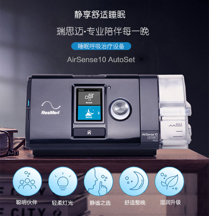 瑞思迈AirSense10 AutoSet Plus家用高端全自动单水平睡眠呼吸机 止鼾/睡眠呼吸暂停正压通气治疗